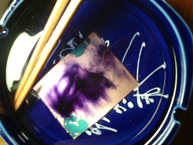 化学屋のせいか、こういう化学っぽい反応(今回は液-固反応)は楽しいですね。表面拡散がどうしても弱いので放っておいてもなかなか反応せず、よし、と表面付近を割り箸で揺すって表面拡散を増やしたりしました(こういう言葉を最近授業で習ったので使ってみました。難しい言葉も割と意味は単純ですょ)。すると瞬く間にちばらるブルーの靄。こういうのでなんかいいなぁと思う私は異常なんですかねぇ。コーヒーにミルクとほとんど代わらないのに・・・(あれは液ー液での拡散ですが)。